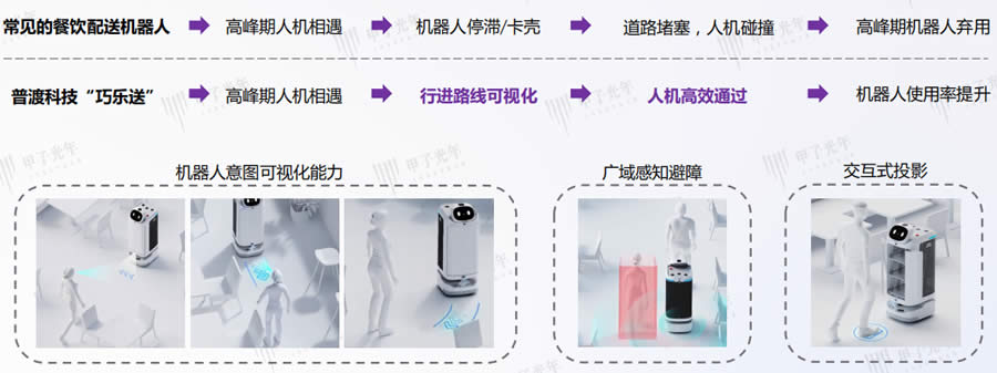普渡科技創(chuàng)新性地將機(jī)器人的行走意圖可視化,建立人機(jī)通行的“紅綠燈機(jī)制”。