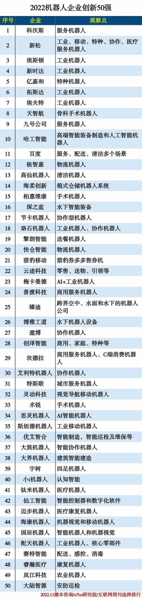 2022機器人企業(yè)創(chuàng)新50強