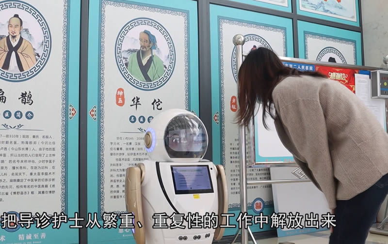 在縣人民醫(yī)院中, 智能導(dǎo)診機(jī)器人為前臺為用戶提供了便捷化服務(wù)。