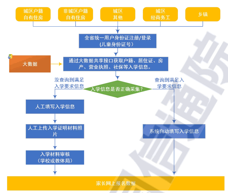 采用數(shù)據(jù)查詢接口作為共享接口,家 長只需在網(wǎng)上注冊填報(bào)必要的身份信息,報(bào)名系統(tǒng)后臺即可直接通過 查詢接口從相關(guān)業(yè)務(wù)部門調(diào)取數(shù)據(jù)自動(dòng)填寫,有效避免了信息誤填、 造假、誤判等問題,保障了報(bào)名材料的真實(shí)性,大大減輕了教育部門 和學(xué)校審核入學(xué)報(bào)名材料的負(fù)擔(dān),學(xué)生家長也無需再上傳任何證明材 料,真正做到了“零材料”報(bào)名,讓招生入學(xué)更加公平、公正、公開。