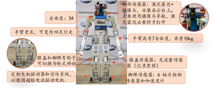 Challenge ,DRC)設(shè)計。它擁有更長的手臂和腿,可以在雙足、四足行走和輪式前進之間切換;全身有34個自由度,左、